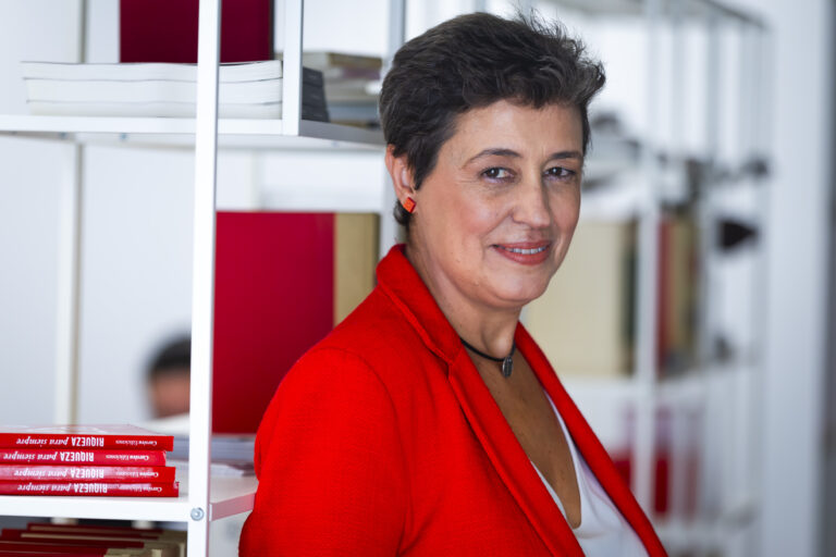 El despatx és lluminós, amb llibres d’auditoria, d’economia i algun detall personal que trenca la rigidesa professional. A la taula, papers endreçats, un cafè mig