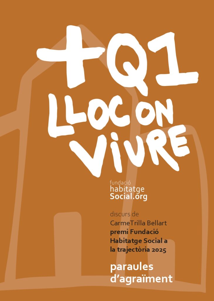 El patronat de la Fundació va guardonar Carme Trilla Bellart per la seva trajectòria, en paraules de la presidenta Maria Vendrell ” … tenim l’honor de reconèixer la trajectòria d’una dona que ha estat —i continua sent— una de les veus més sòlides, rigoroses i perseverants en la defensa del dret a l’habitatge digne per a tothom.“